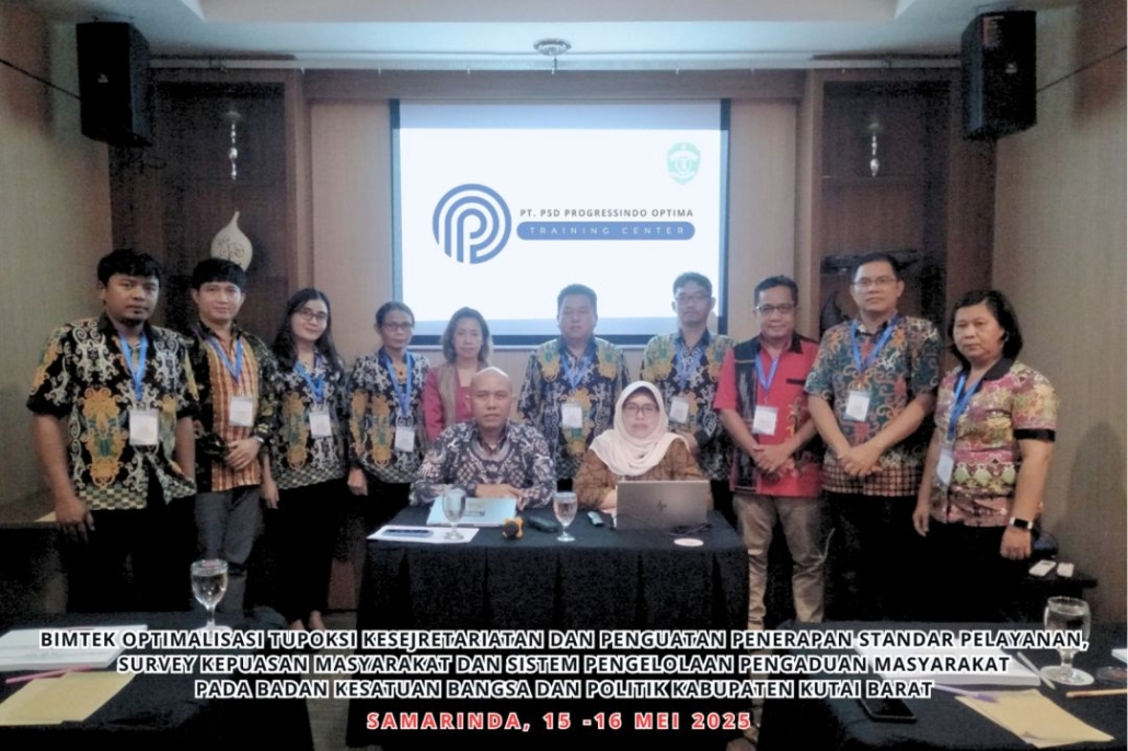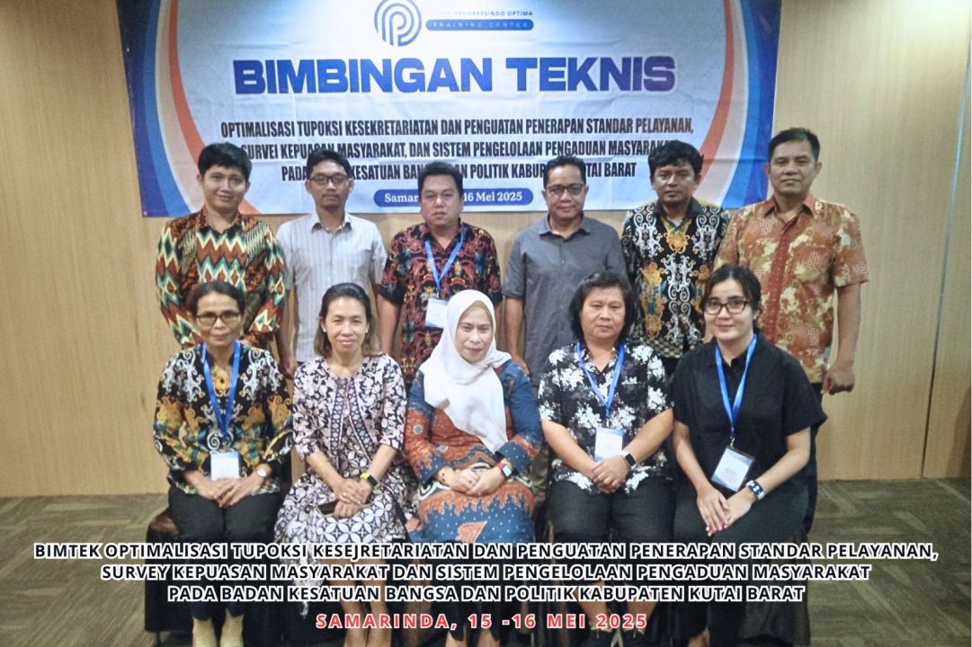 Bimtek Optimalisasi Tupoksi Kesejahteraan dan Penguatan Penerapan Standar Pelayanan,Survey Kepuasan Masyarakat dan Sistem Pengelolaan Pengaduan Masyarakat Pada Badan Kesatuan Bangsa dan Politik Kabupaten Kutai Barat,Samarinda 15-16 Mei 2025